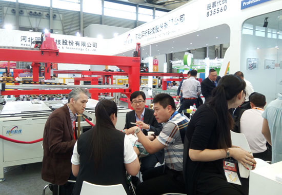 展臺(tái)吸引了海內(nèi)外眾多來(lái)訪者駐足參觀,踴躍了解新產(chǎn)品——流水線及三腔層壓機(jī)設(shè)備,來(lái)訪嘉賓表現(xiàn)出濃厚興趣。